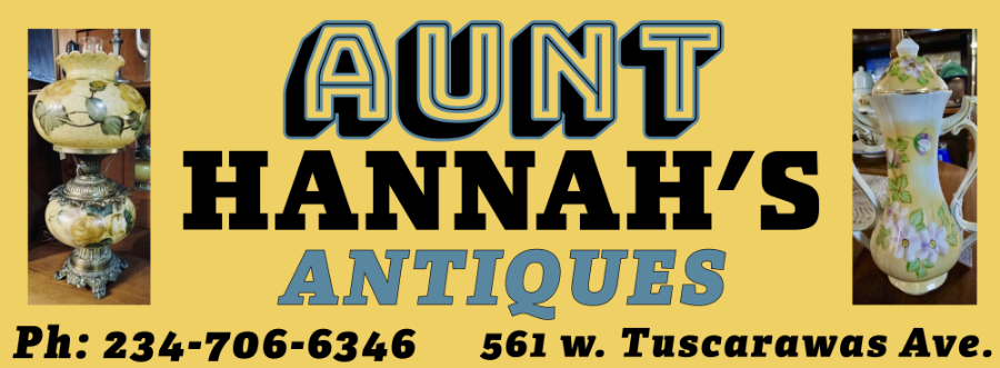 Welcome to Aunt Hannah's Antiques in historic downtown Barberton, Ohio. We have two shopping levels full of treasures for your shopping pleasure! Please stop by and see us today!